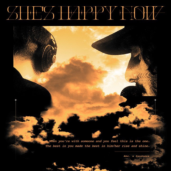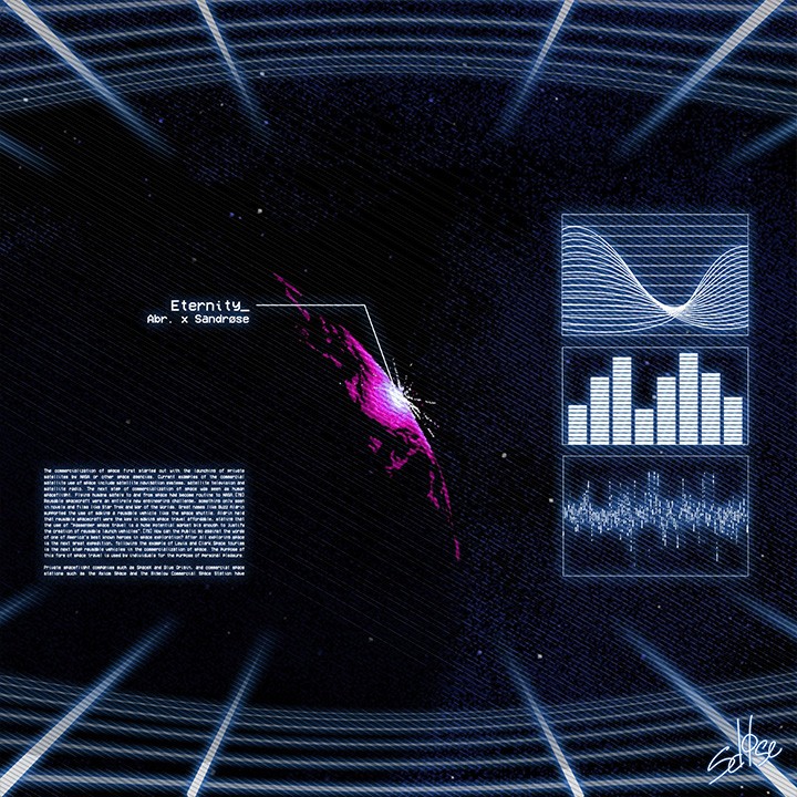 En 2023, un EP de cinq titres a vu le jour afin d’ancrer la collaboration dans un projet concret. J’ai fait évoluer la direction artistique avec un parti pris clair : accentuer la dimension rétro-synthwave de la musique, tout en préservant l’identité d’Abr. x Sandrøse. Sur le plan visuel, j’ai conçu une cover et des animations plus épurées, mettant en avant l’atmosphère 80’s ainsi que les figures des artistes.
