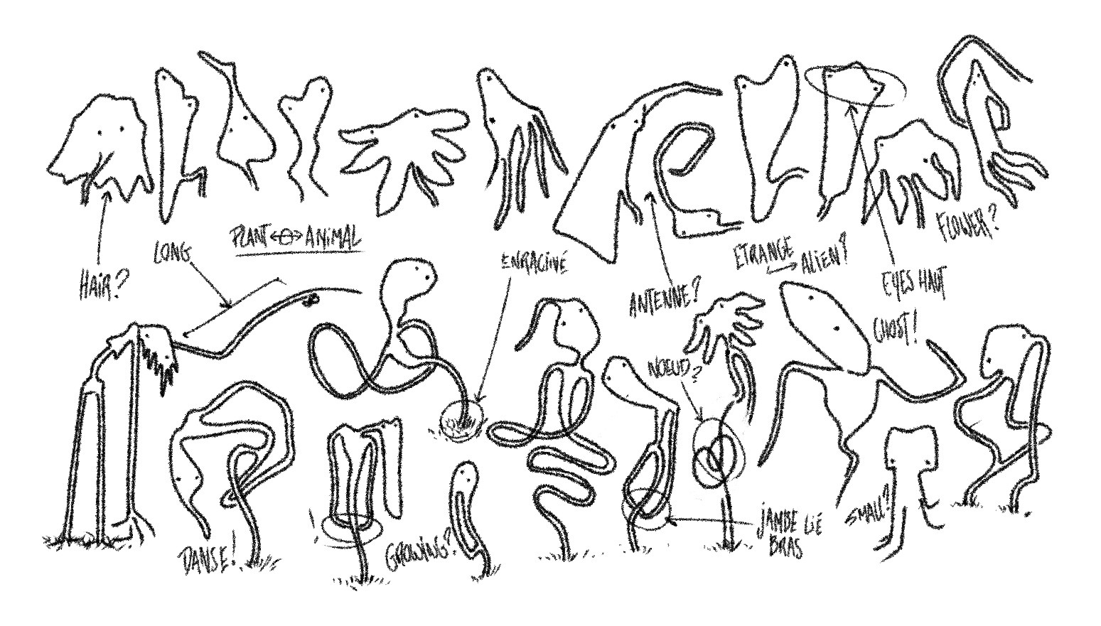 Enfin, je savais que ce lieu devait être incarné par des figures personnifiées, afin de créer un paysage plus vivant et plus évocateur pour le public. J’ai donc créé ces entités mystérieuses : les Jims. Leur existence suggère un lore et une histoire : que sont-ils ? D’où viennent-ils ? Autant de questions qui renforcent l’étrangeté et le mystère, et dont les réponses se révèlent progressivement à travers les visuels, les clips et la musique.