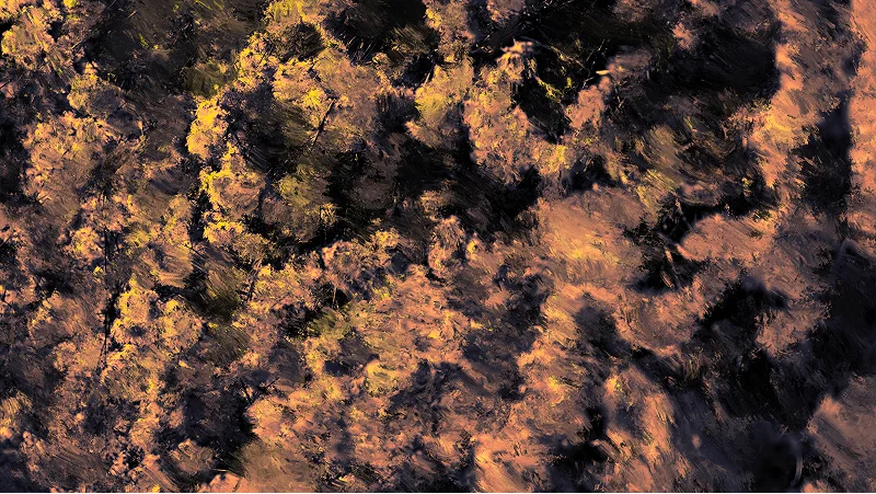 Une fois les plans tournés et la DA validé avec l'artiste j’ai travaillé l’image en post-production afin de créer ce rendu très texturé, proche de la peinture. Et aligné la colorimétrie avec celle de l’image de référence choisie par le groupe. J’ai réalisé une vingtaine de peintures digitales (Photoshop, Procreate), puis retravaillé chaque plan en post-production utilisant ces versions peintes en références (EbSynth et After Effects).